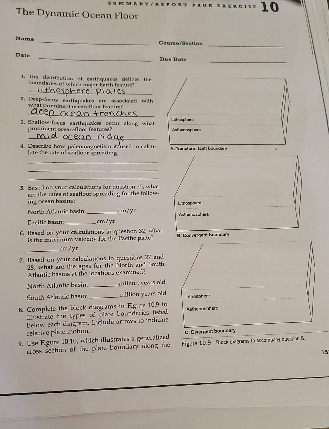 Solved Part 1 Geology Lab Report Plate Tectonics Name Date Chegg Com
